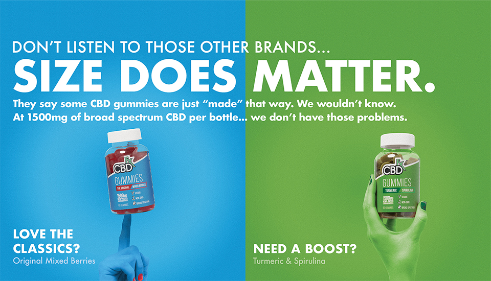 Print and online campaign primarily featured in LA Weekly, featuring the Higher Potency CBDfx Gummy Collection.